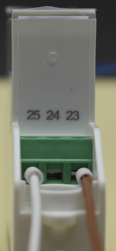 Über die grünen Klemmen erfolgt die Kommunikation mittels RS485 Schnittstelle. Dabei wird vom Interface Modul das jeweilige, vom Zähler vorgegebene Protokoll verwendet.