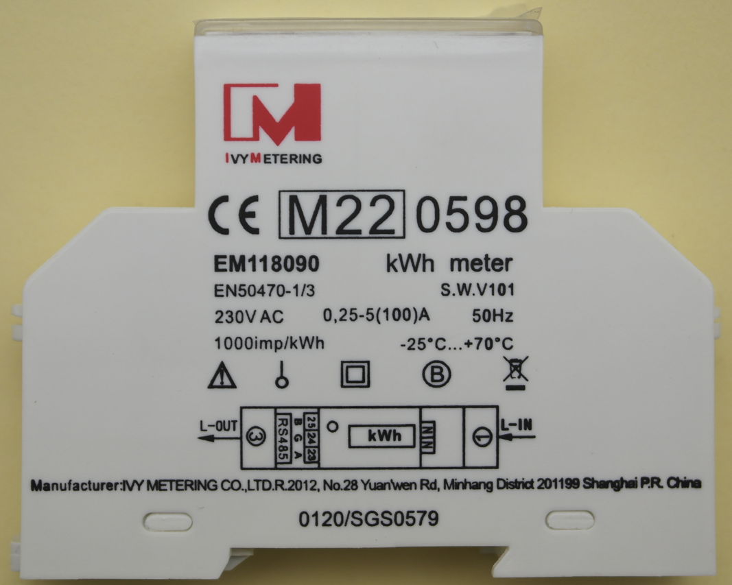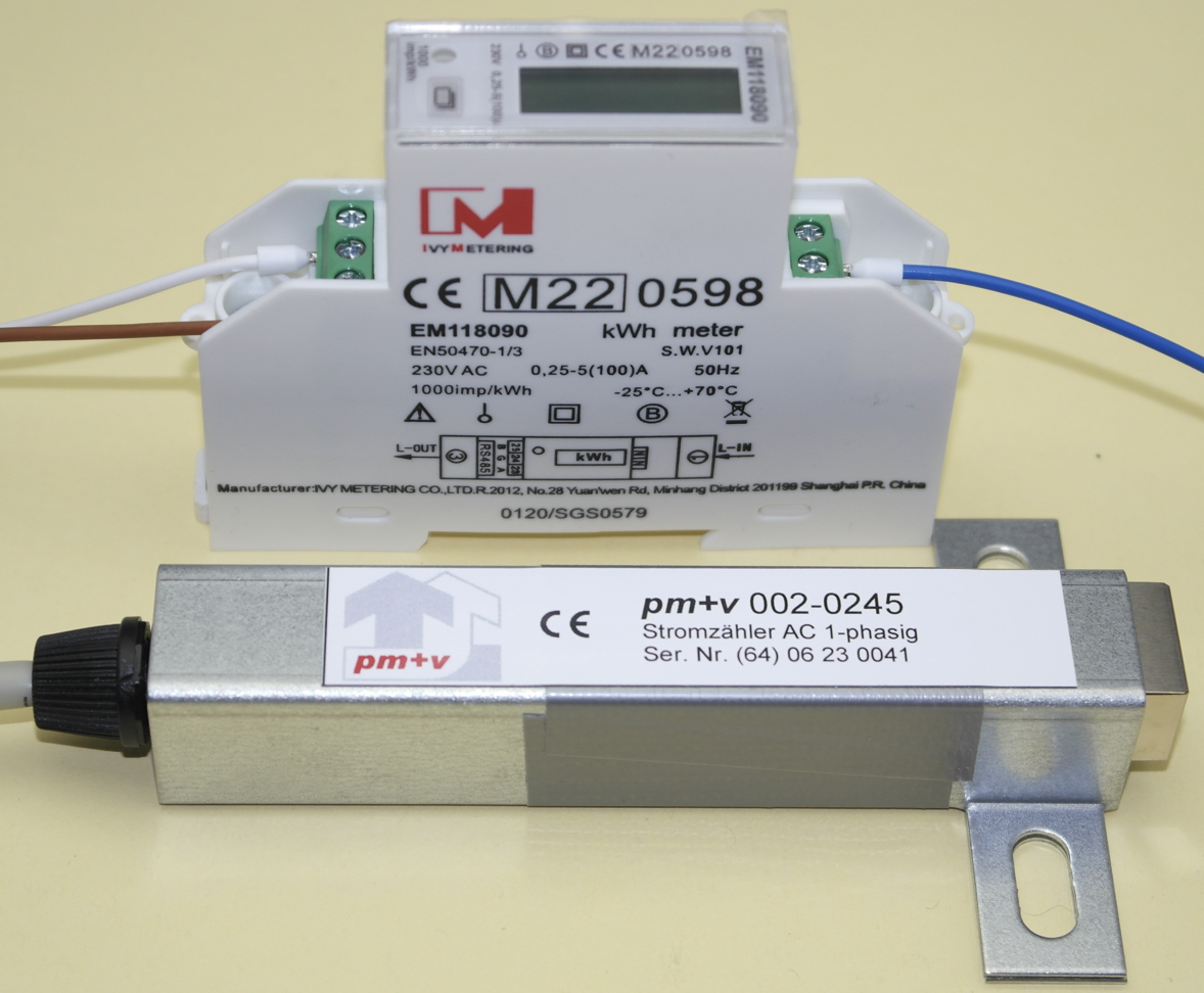 Mittels des am Interface Modul fest montierten Kabels (2 x 0,5qmm) wird das Interface Modul mit dem Gleichstromzähler verbunden. Dabei ist unbedingt auf die Polarität zu achten. Beim AC-Stromzähler EM 118090 links weiß, rechts braun.