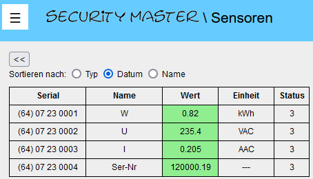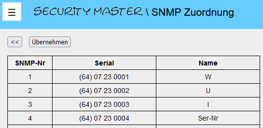 ausgelesen und können mit dem security master visualisiert und von dort mittels SNMP ausgelesen werden.