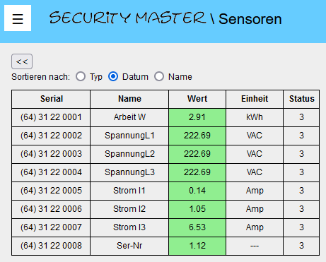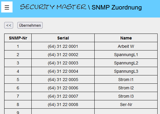 ausgelesen und können mit dem security master visualisiert und von dort mittels SNMP ausgelesen werden.